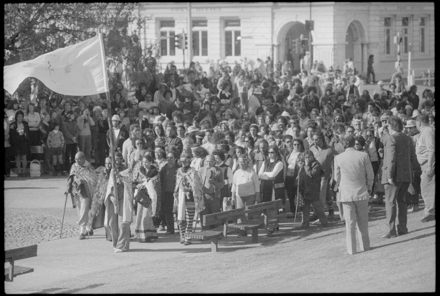 “The Maori land marchers rested in Palmerston North today before moving on to Shannon tomorrow.