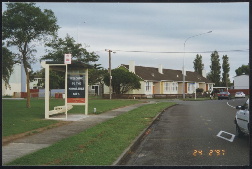 Palmerston North bus shelter on route 4, at 77 Highbury Avenue.
