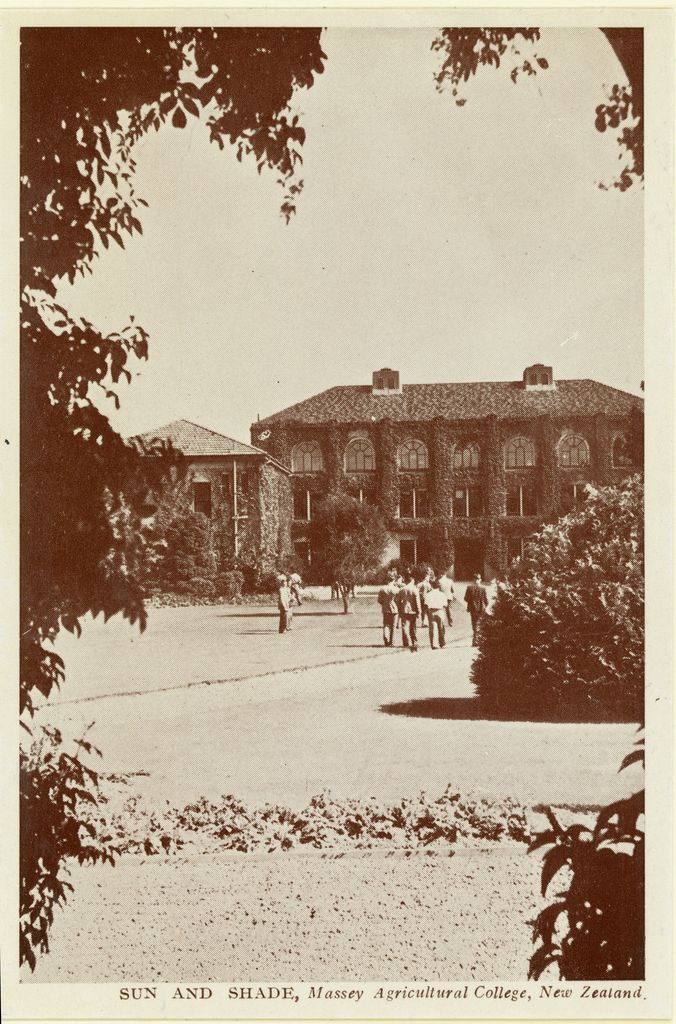 Looking across from the site of "Tiritea" (Vice-Chancellor's residence) towards the rear of the Main Building.