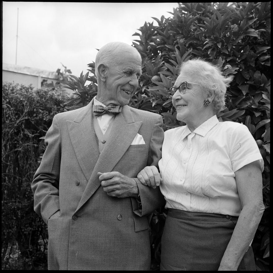 This image was taken for a story that ran in The Manawatu Evening Standard on 25th March, 1963. "A Foxton couple, Mr and Mrs D. R. Barron, are celebrating their golden wedding today. Since taking up residence in Foxton 39 years ago, both have taken and still take to a lesser extent full and active participation in the church, community, civic, cultural and social life of the town."