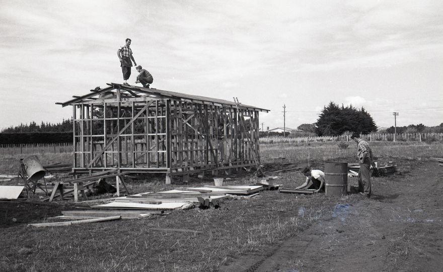 Caption: "The first Evangelical training centre in New Zealand has been opened on the 100 acre property formerly owned by Mr. Tom Woodruff, who recently joined the Mission, and situated on the Tangimoana highway, 20 miles from Palmerston North. The training centre is supervised by Mr. John Edwards, acting principal, and Mr. Don Hay, acting representative, both of whom arrived from the U.S.A. last February to take up their posts. All together there are five such training centres in the world."
