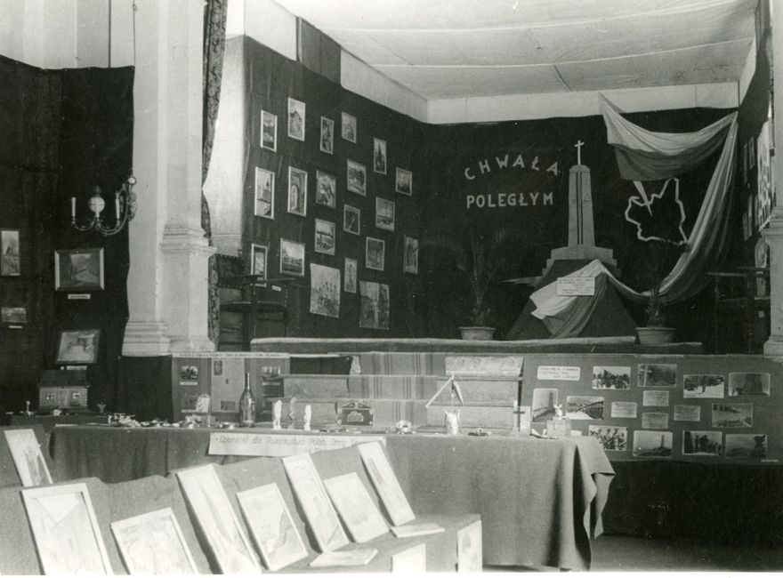 Exhibition of gifts to be sent to New Zealand, as displayed at Cupra Marittima, italy, during World War Two. The gifts were made by Polish soldiers to give to New Zealand as an expression of their heartfelt gratitude for New Zealand's treatment of the Polish children refugees and appreciation of the great friendship shown to the soldiers through the sending of correspondence and parcels, during World War Two.
