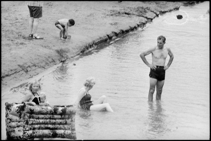 This image was taken (but not used) for a story that ran in The Manawatu Evening Standard on 5th January 1966 "Scenes at the Raumati Bridge picnic area which is again proving popular with Palmerston North families. At this point there is a good swimming hole on the Pohangina River."