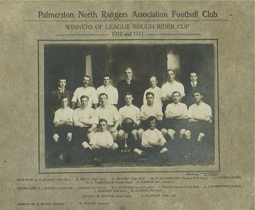 - Commemorating the back to back wins of the Palmerston North Rangers Football (Soccor) Club in both 1910 and 1911. Presented the Leagues Rough Rider Cup. Photo by Bunting studios of Palmerston North and Napier, operating out of The Square, Palmerston North.