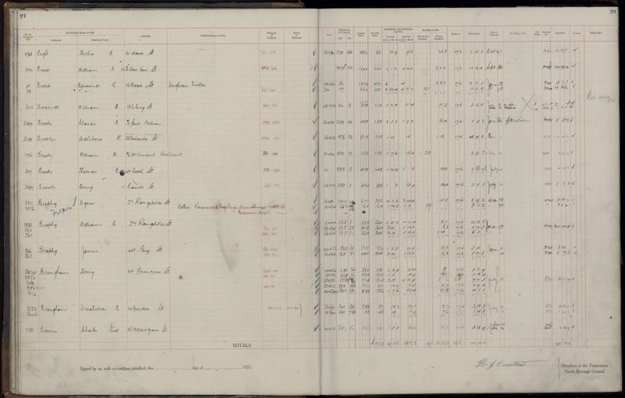 Palmerston North Borough Council rate book, listing rate payers for the years (1 April - 31 March) 1921 - 1922. Gives names, street, owner (if different to rate payer), legal description of property, capital and unimproved values and rates paid.