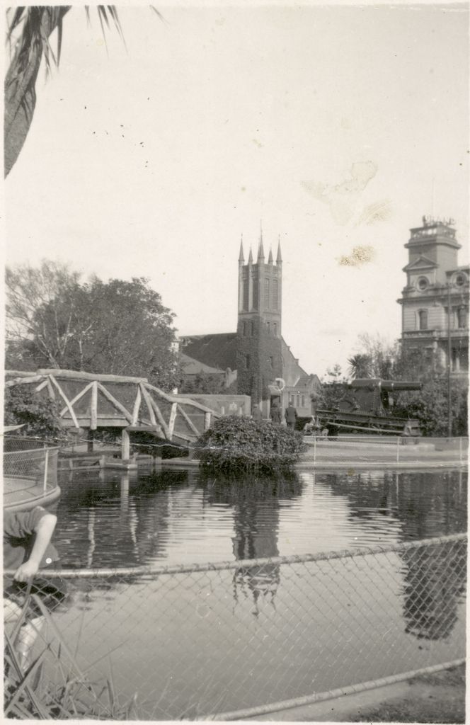 This small print shows a view of All Saints Church and The Lakelet in The Square.