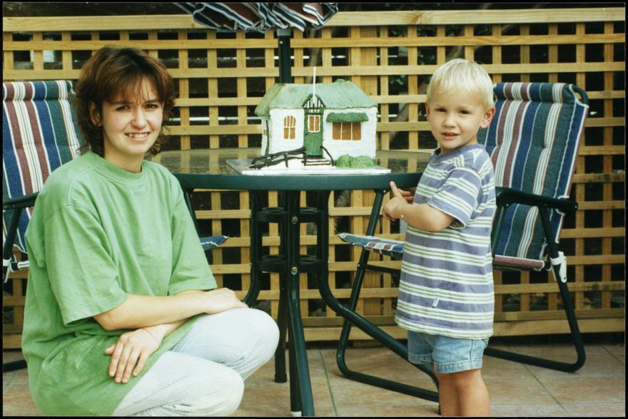 - On the occasion of the Ashhurst (former) Post Office building's centenary. The building is now used at the town library. In this photograph a woman and child pose with the celebratory cake in the shape of the building.