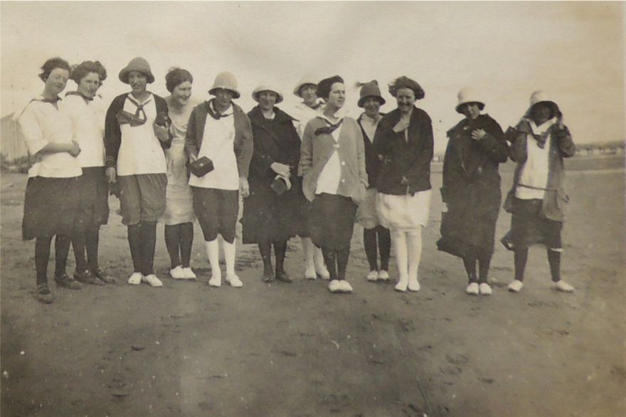 Party of hardy YWCA members at Foxton Beach in the mid 1920's. Josie Griffiths 2nd from left.