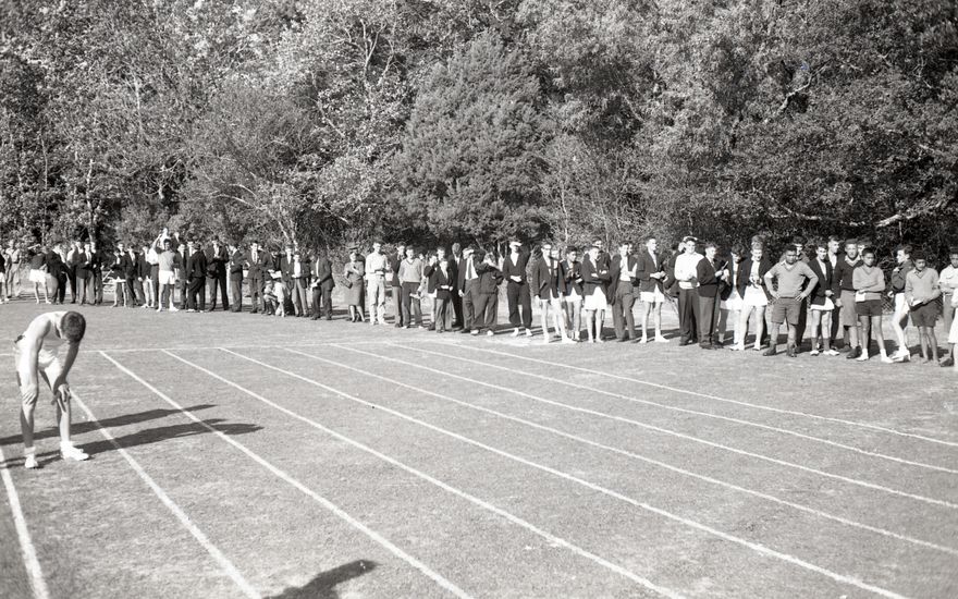 Caption: "On Friday15th March, the annual Inter-Catholic Secondary Schools' Athletic Competition was held at Hato Paora College, Parorangi, Feilding. The four schools which took part were as follows: St Augustine's, Wanganui, St Joseph's, Masterton, St Patrick's, Palmerston North, St Paul's Maori Boys' college, Feilding. The Viard Shield was won by St Augustine's, Wanganui, for the second year in succession and the final points were: St Augustine's 49, St Joseph's 41, St Paul's, 33 1/2, St Patrick's 26 1/2. St Augustine's also won the senior and junior Relay trophies and the Intermediate Relay trophy went to St. Joseph's"