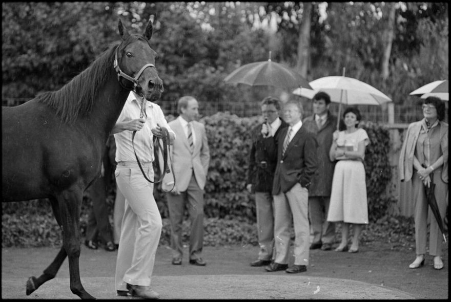 This image was taken by the Evening Standard on the 11th of February 1984 but was not published. It depicts former United States president Jimmy Carter and his wife Rosalynn visiting Highden Park - Herrick and Judy Perry's thoroughbred stud farm at Awahuri.
