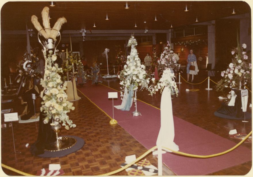 The "Royal Wedding" floral art display seen here was held at the Centennial Convention Centre in July 1981 to commemorate the wedding of Prince Charles to Lady Diana Spencer. The display was mounted by the Manawatu Area Floral Art Society under the title "Royal Occasion".