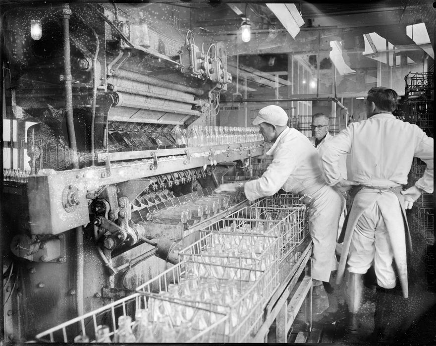This image was not published in The Manawatu Evening Standard, taken on 17 July, 1959. "Palmerston North milk treatment station start of the process." Another photo associated with this article was published on the same day.
