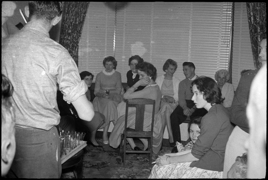 This image was taken for Photorama pictorial magazine’s July 1960 edition but was not published. Featured are the family and friends of “Mr Peter Loader of Wellington and Miss Heather Stone of Palmerston North photographed at a party to celebrate their engagement.”