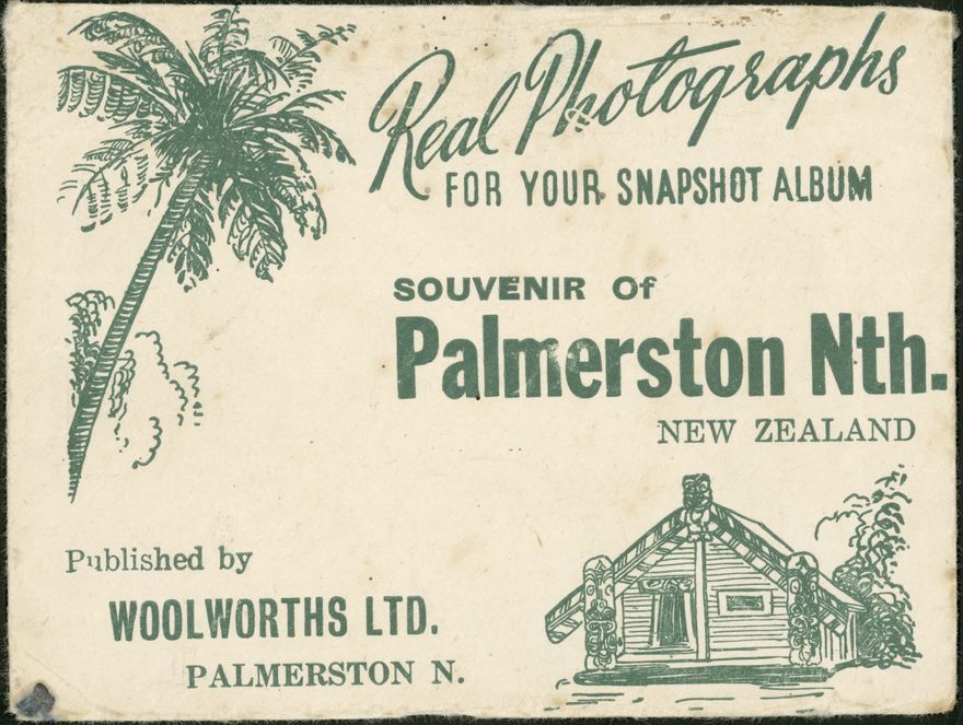 Eight small prints of various locations around Palmerston North contained in a paper envelope that reads, "Real Photographs For Your Snapshot Album - Souvenir of Palmerston North, New Zealand. Published by Woolworths Ltd. Palmerston North".