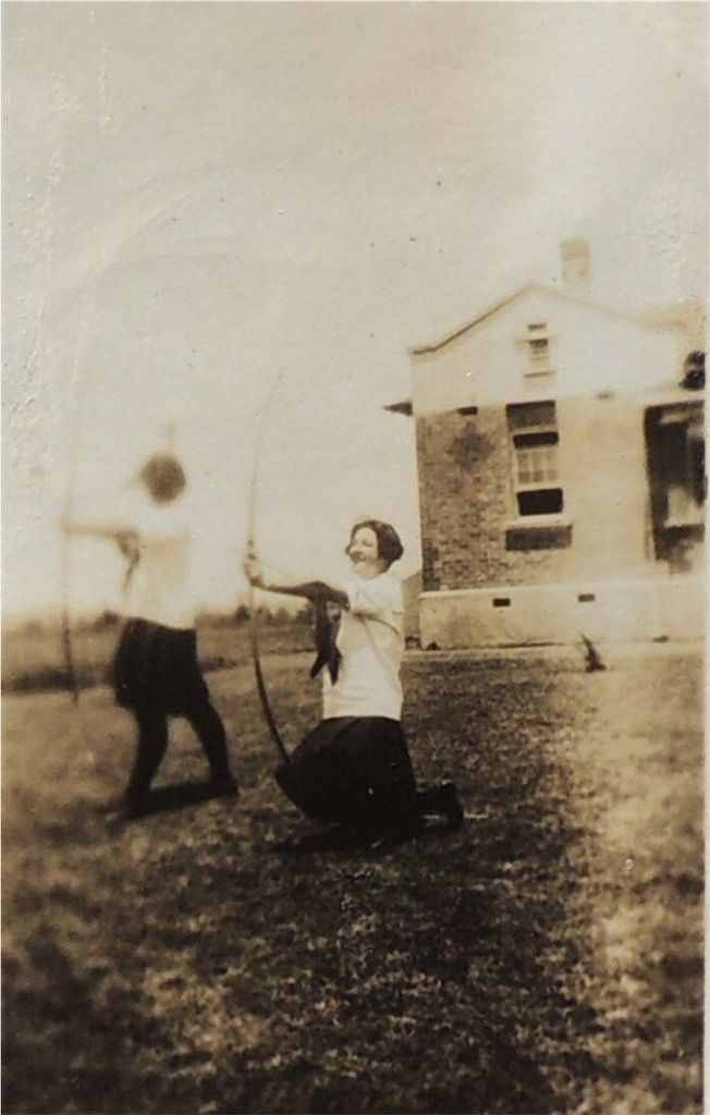 Archery at the YWCA conference in April of 1926 at the Awapuni RaceCourse. Taken with a Box Brownie camera by Josie Griffiths.