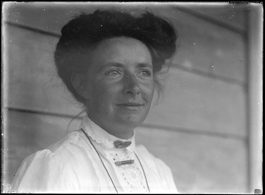 This photograph was created by William James Young in the early 20th century. A large variety of subjects are depicted in the collection, but family, rural life and travel are the most prominent themes. The exact location of the photographs in the Young Collection is unknown, but W J Young lived on a farm in Mt Stewart, Rangitikei, and some of the photographs include his house. The Young family were apparently avid travellers and photographs later in the collection feature scenes from Rotorua, Auckland, Whanganui, as well as other unidentified locations. The portraits are all unidentified, but are presumably of members of the Young family. The photographers parents were George Henry (b 1833) and Jane McDowell (b 1842, d 1916). They came to New Zealand in 1877. The same year, they bought the home farm on Mt Stewart and called it Kilrudden after Kilrudden House, the home of the McDowell family in Ireland. The couple had four children: Ann (b 1873), Margaret (b 1876), John (b 1878) and William James (b 1880). William James married Mary Elizabeth Thompson and they had four children: Doris (b 1914, d 1989), George (b 1916, d 1991), Royden McDowell (b 1925, d 1992) and Noel William (b 1927, d 2013).