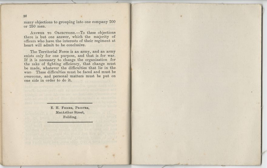 Special District Order No. 43/1915. By Colonel R. W. Tate, Commanding Wellington Military District. The subject of this paper is the four-company organization recently adopted for the infantry of the Regular Army, and which will shortly be also adopted for the Territorial Force. Originally this article was given as a lecture to the London Units of the Territorial Force, by Brevet-Major Hereward Wake, King's Royal Rifles.