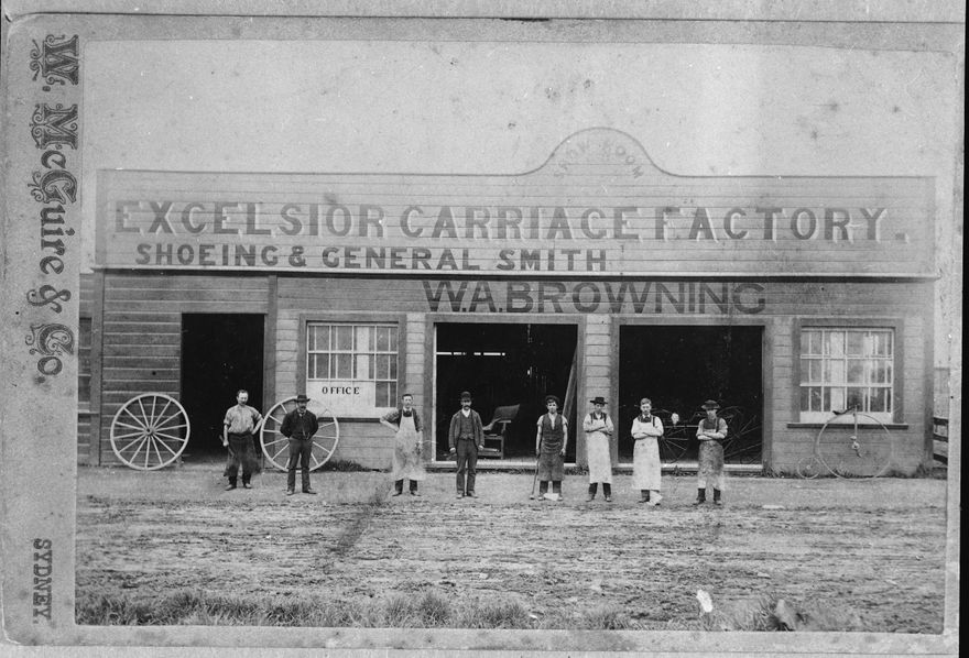 William Arthur Browning commenced business in Palmerston North circa 1889, purchasing the "English and American Coach Factory" in Cuba Street established by Robert Parr. In September 1894 the Cuba Street premises were destroyed by fire and Browning moved to Main Street West, where he operated until just after World War One. He died in March 1929.