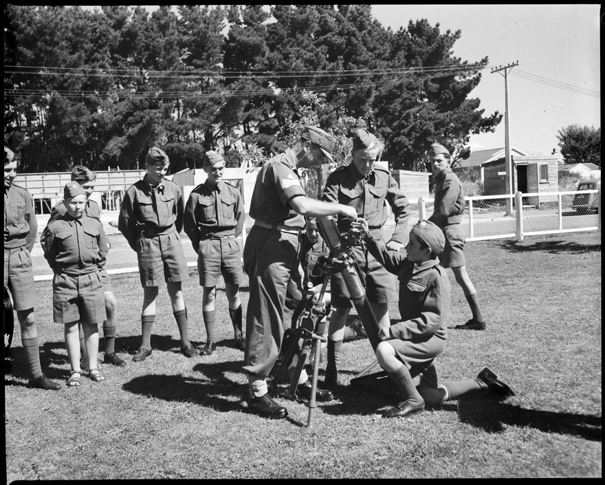 This image was not published in The Manawatu Evening Standard, taken on 14 February, 1959. "Training during the Freyberg High School's Barracks Week." Another photo associated with this article appears on the same day.