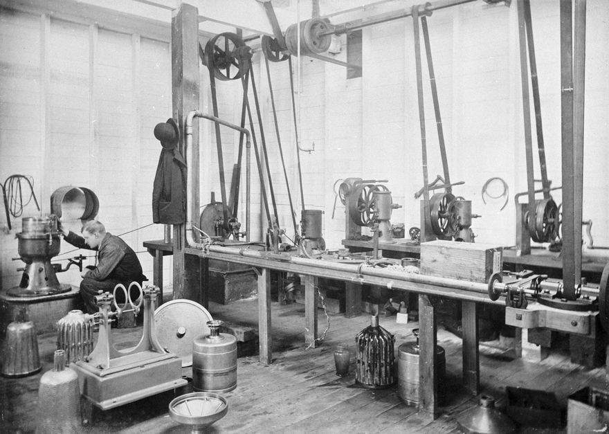 Interior of Holben and Kirk's engineering workshop, Rangitikei Street