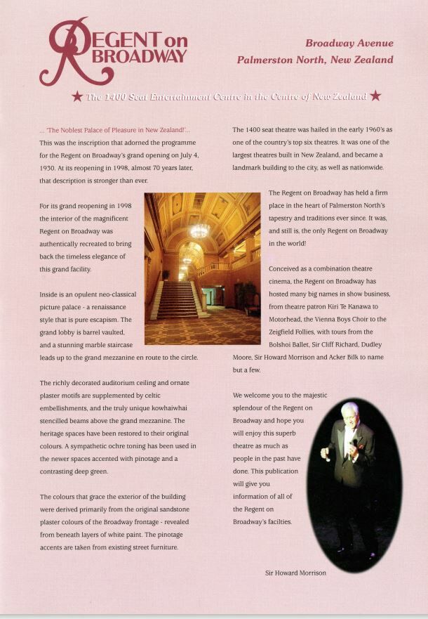 A programme describing the Regent Theatre, following its refurbishment and reopening in 1998.