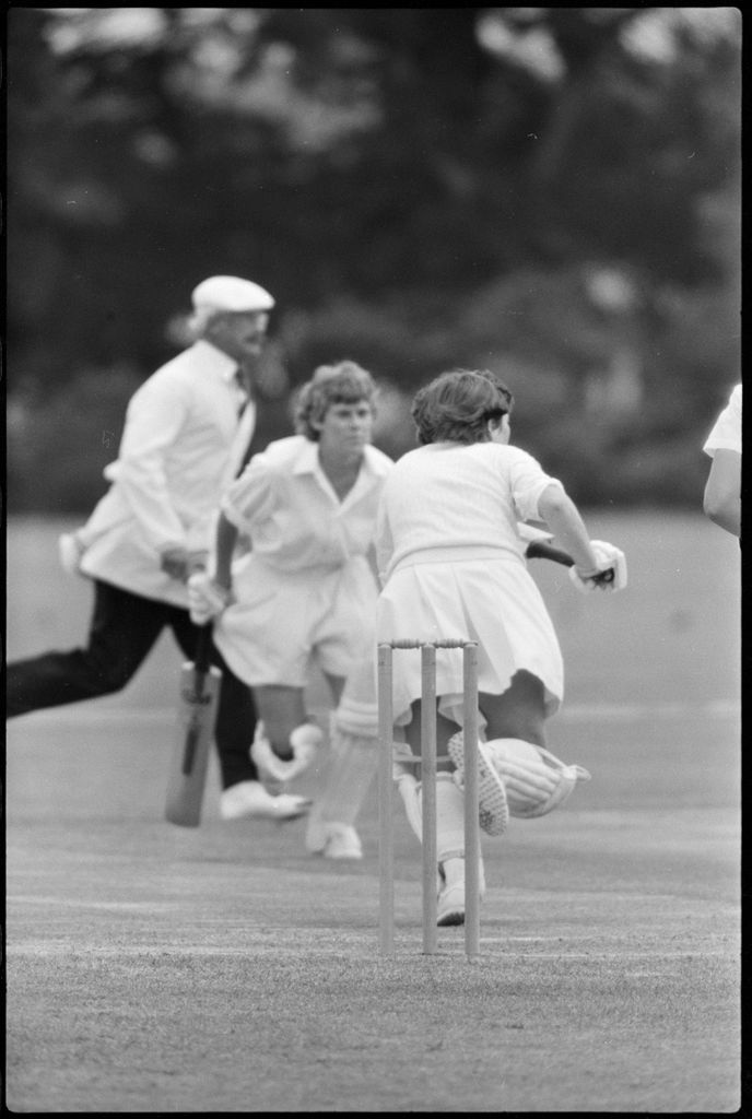 Penny Kinsella and Lorraine Vincent at bat. This image was taken (but not used) by the Evening Standard on 19th of January 1982. It depicts Manawatū Women’s cricket team taking on the International Australian Women’s team in a limited over warm-up match for the Hansell's Vita Fresh Women's World Cup 1981/1982. The match was held at Ongley Park in Palmerston North. The Australian team won by 202 runs. The match report ‘Aussies too polished in all facets’ was written by Ford Watson and published the next day:
