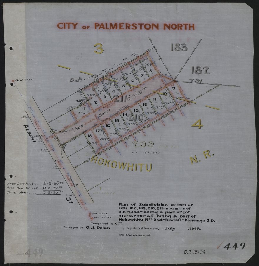 A volume containing survey plans (subdivisions) numbered in consecutive order. Some came from the City Engineer's Department, prior to the creation of the City Planner's Department. They include drawings produced by Council staff and outside consultants (engineers, surveyors and architects). Volume 2 contains numbers 335 to 690.