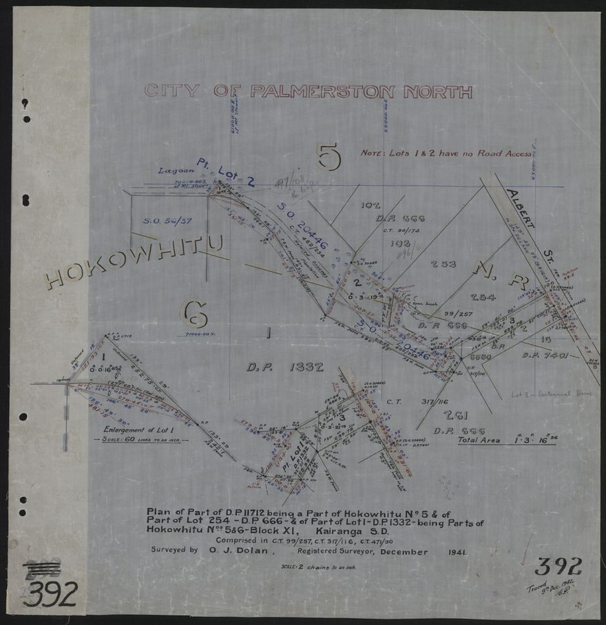 A volume containing survey plans (subdivisions) numbered in consecutive order. Some came from the City Engineer's Department, prior to the creation of the City Planner's Department. They include drawings produced by Council staff and outside consultants (engineers, surveyors and architects). Volume 2 contains numbers 335 to 690.