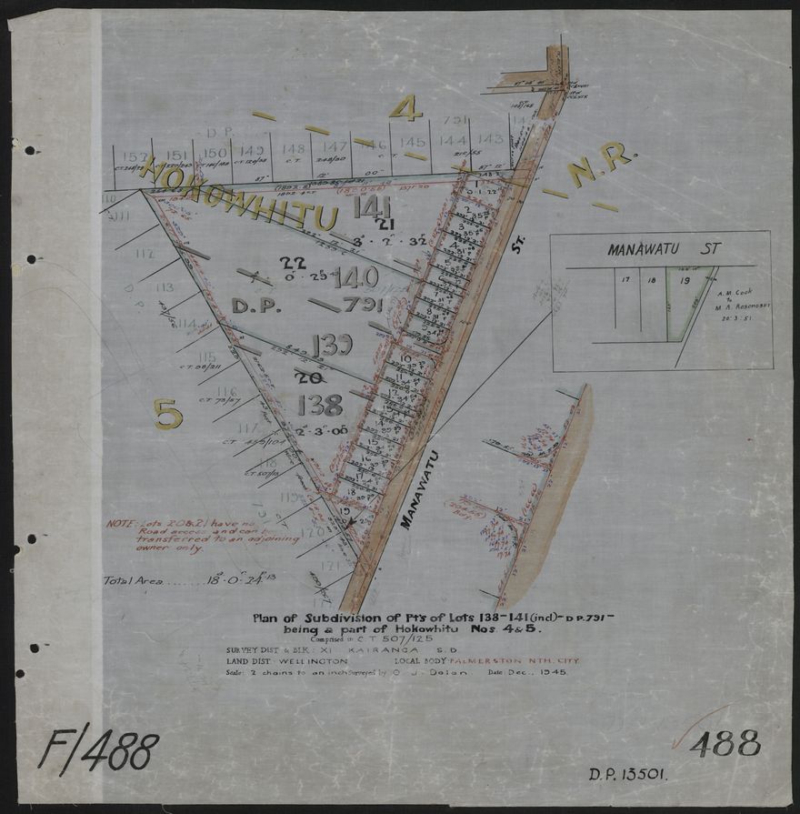 A volume containing survey plans (subdivisions) numbered in consecutive order. Some came from the City Engineer's Department, prior to the creation of the City Planner's Department. They include drawings produced by Council staff and outside consultants (engineers, surveyors and architects). Volume 2 contains numbers 335 to 690.