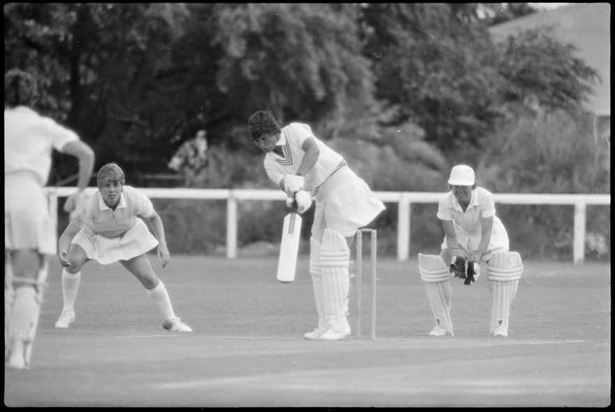 This image was taken (but not used) by the Evening Standard on 21st of January 1982. It depicts the New Zealand women’s cricket team taking on the International XI women’s team in a limited over match for the Hansell's Vita Fresh Women's World Cup 1981/1982. The match was held at Fitzherbert Park in Palmerston North. The New Zealand team won by 97 runs.