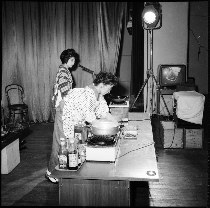 - This image was not published in the Manawatu Evening Standard, taken on 18 July, 1963. "With the greatest of ease, Mrs Arai, the Japanese television demonstrator for the New Zealand Meat Board in Tokio, tossed the sliced mutton in boiling oil when preparing her special recipe for New Zealand audiences. Not once, but several times, she repeated the tossing." Another image of Mrs Arai was published on 18 July, 1963.