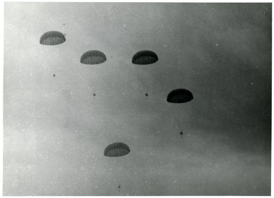 Parachutists. The first International Agricutural Aviation Show was held at Milson Airport, Palmerston North, 9 - 10th November, 1956. Over 60 aircraft attended and a crowd of 2000 were entertained with a fly-pass of 64 planes.
