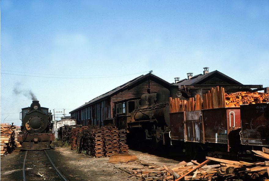 Two BB class locomotives (on the left is engine number 629) in the Palmerston North railway yards.