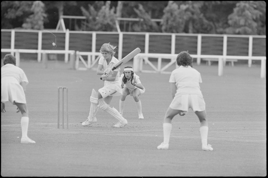 This image was taken (but not published) by the Evening Standard between the 27th and 29th of December 1980. It depicts a moment of action from the Hallyburton Johnstone Shield 2-day match between the Central Districts and North Shore women’s cricket teams. The match was drawn.