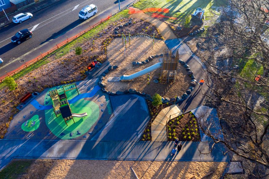An aerial view of the Milverton Park playground. The new playground was reopened on Saturday, 4 August, 2019. The park was gifted to the Council in 1925 by William Milverton, whose only condition was that the land remains free for the public to use for recreation and amusement.
