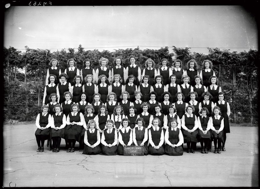 The Convent School Choir has assembled for a group photograph, taken whilst in school issue gym frocks.