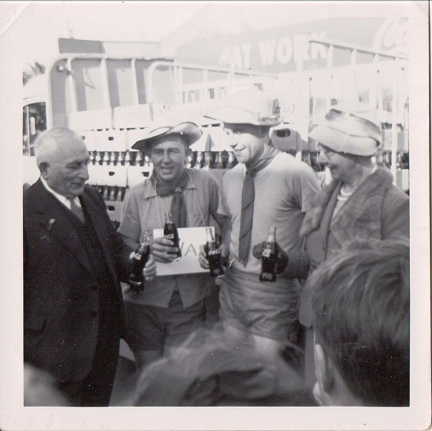 Wheelbarrow race winners with the Palmerston North Mayor & Mayoress, Mr & Mrs Rennie