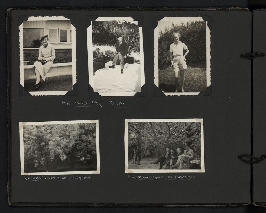 This photograph album depicts the Creighton Family of 5 Donnington Street, Palmerston North. It shows a range of different locations around Palmerston North and the surrounding area, ranging from 1940 to around 1943. The woman in most of the pictures (unless otherwise specified) is Emma Curling Creighton (aka Goldie, Bubs, Curling and Spiffy), while the man is Melvyn J Creighton. They married 19 July 1941 and had Robyn Curling Creighton 29 December 1942 and Lynn Melwynn Creighton 20 October 1948.