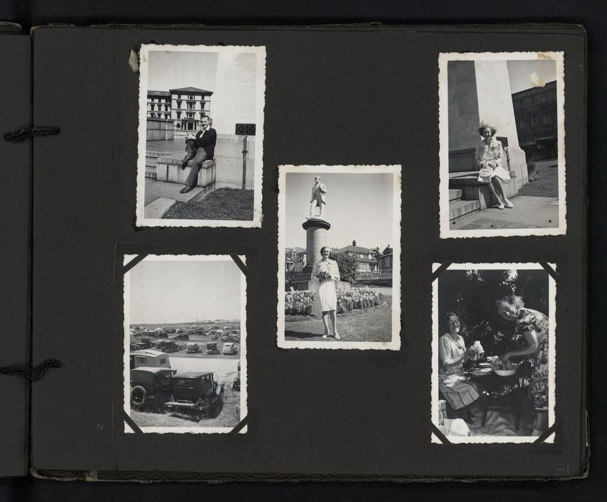 This photograph album depicts the Creighton Family of 5 Donnington Street, Palmerston North. It shows a range of different locations around Palmerston North and the surrounding area, ranging from 1940 to around 1943. The woman in most of the pictures (unless otherwise specified) is Emma Curling Creighton (aka Goldie, Bubs, Curling and Spiffy), while the man is Melvyn J Creighton. They married 19 July 1941 and had Robyn Curling Creighton 29 December 1942 and Lynn Melwynn Creighton 20 October 1948.