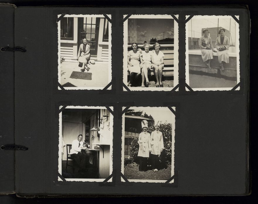 This photograph album depicts the Creighton Family of 5 Donnington Street, Palmerston North. It shows a range of different locations around Palmerston North and the surrounding area, ranging from 1940 to around 1943. The woman in most of the pictures (unless otherwise specified) is Emma Curling Creighton (aka Goldie, Bubs, Curling and Spiffy), while the man is Melvyn J Creighton. They married 19 July 1941 and had Robyn Curling Creighton 29 December 1942 and Lynn Melwynn Creighton 20 October 1948.