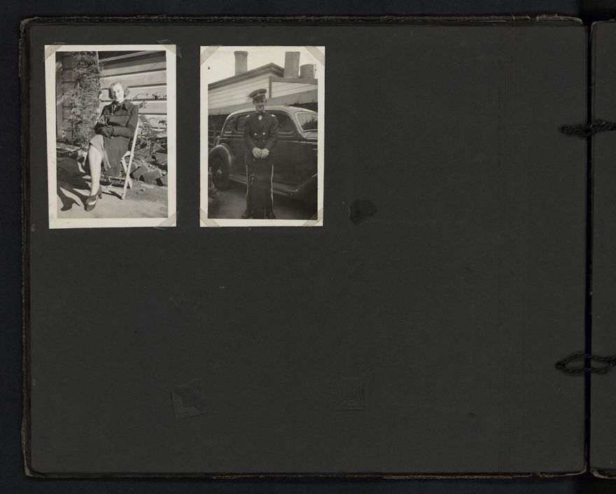 This photograph album depicts the Creighton Family of 5 Donnington Street, Palmerston North. It shows a range of different locations around Palmerston North and the surrounding area, ranging from 1940 to around 1943. The woman in most of the pictures (unless otherwise specified) is Emma Curling Creighton (aka Goldie, Bubs, Curling and Spiffy), while the man is Melvyn J Creighton. They married 19 July 1941 and had Robyn Curling Creighton 29 December 1942 and Lynn Melwynn Creighton 20 October 1948.