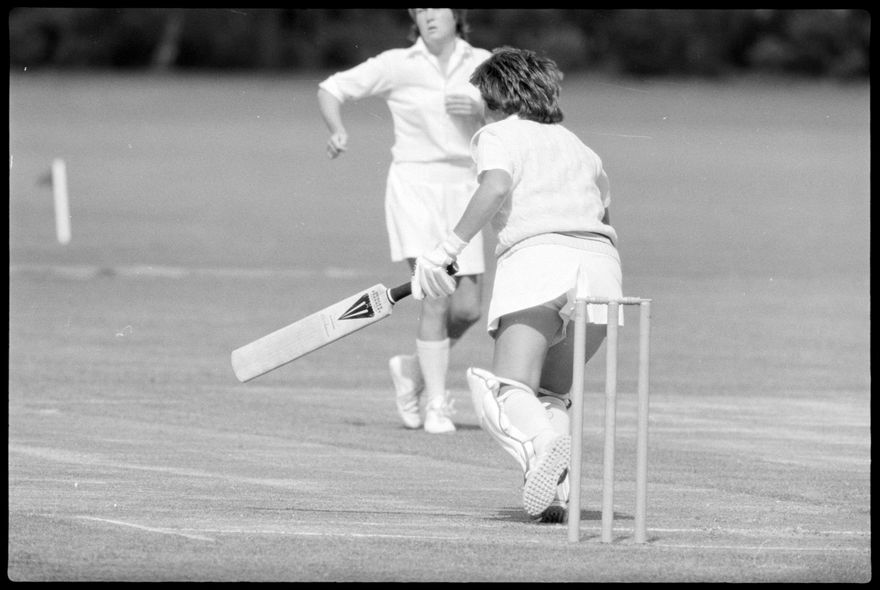 This image was taken (but not used) by the Evening Standard on 19th of January 1982. It depicts Manawatū Women’s cricket team taking on the International Australian Women’s team in a limited over warm-up match for the Hansell's Vita Fresh Women's World Cup 1981/1982. The match was held at Ongley Park in Palmerston North. The Australian team won by 202 runs. The match report ‘Aussies too polished in all facets’ was written by Ford Watson and published the next day:
