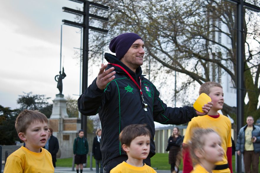 This early morning game of ‘Rippa Rugby’ in Te Marae o Hine – The Square was played by local school children who donned the colours of Romania and Georgia. These countries played their Rugby World Cup 2011 game at Palmerston North’s Arena later that night. The game attracted media interest, with TV One news reporters Tamati Coffey and Petra Bagust in attendance.