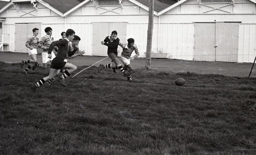 Caption: "Kia Toa 3rd grade Rugby team beat the Old Boys team. Kia Toa have to date won every game with seven points ahead and with only two games to play are a strong contender to win their grade competition."