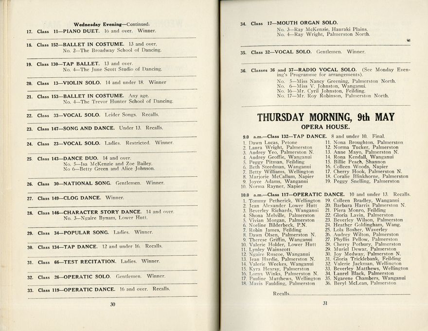 Manawatū Competitions Society, Official Programme, Seventeenth Annual Festival