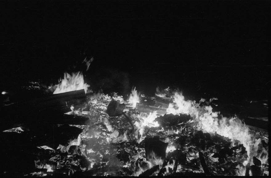 - These images were likely taken by Frank Goldingham for Photorama pictorial magazine. Two were published in the June 1960 edition. - Caption: Photographs of the fatal fire at Motuiti Road, Foxton, in which Mrs Rere Moana Kauri and her 4 1/2 year old daughter Lily perished. Our cameraman arrived about 15 minutes after the outbreak of the fire which burnt the old wooden building to the ground