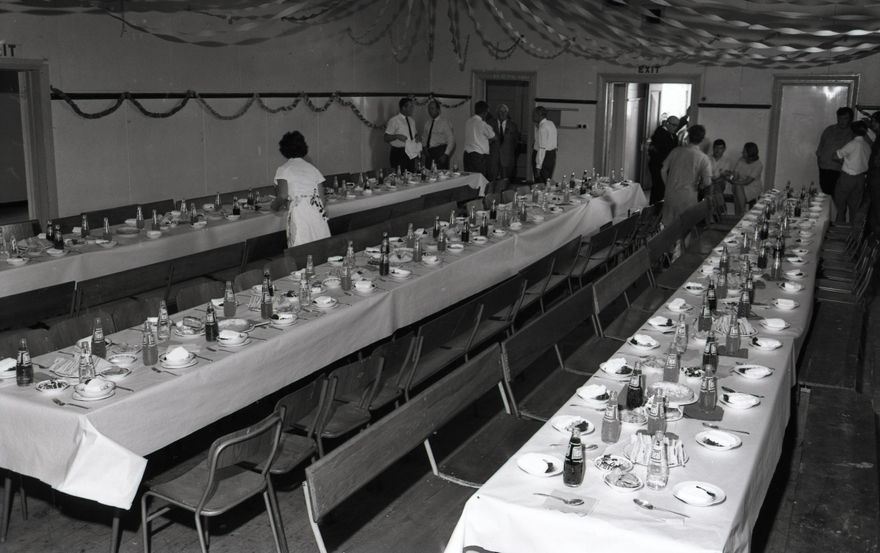 This image was taken for a story that ran in the Manawatu Evening Standard on December 19 1969 with the caption, "Evening Standard paperboys attending their annual Christmas party this morning. They were guests of the management. Seasons greetings were extended by the managing director, Mr N A Nash. John Julian replied on behalf of the boys."