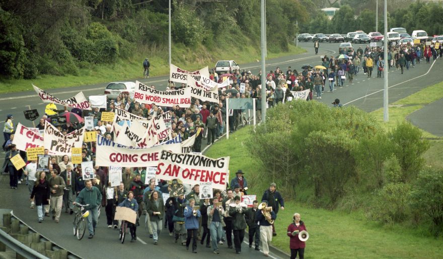 This image was taken (but not used) for a story that ran in The Manawatu Evening Standard on 5 August 2000 "Protestors wend their way from Massey University to the College of Education to protest the repositioning proposals"