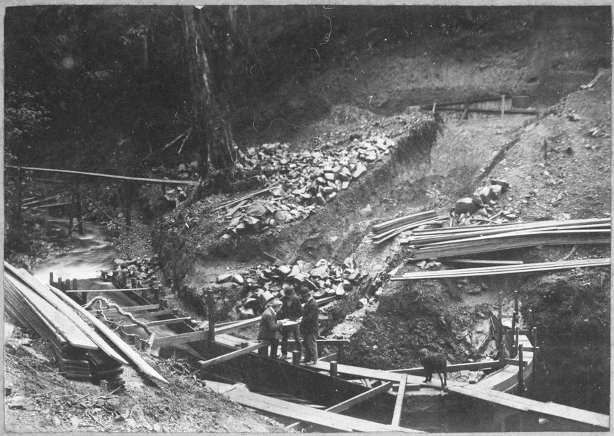 This dam was constructed in 1906-1907 to replace the original dam (built 1888-1889). It was built to a height of 15 feet, though this would later prove insufficient for the growing population of Palmerston North. In 1912, it was raised to a height of 50 feet.