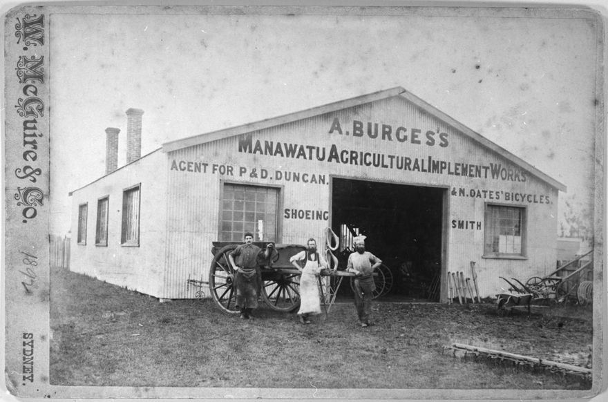 Adam Burges's Manawatu Agricultural Implement Works, corner of Rangitikei Street and Queen Streets